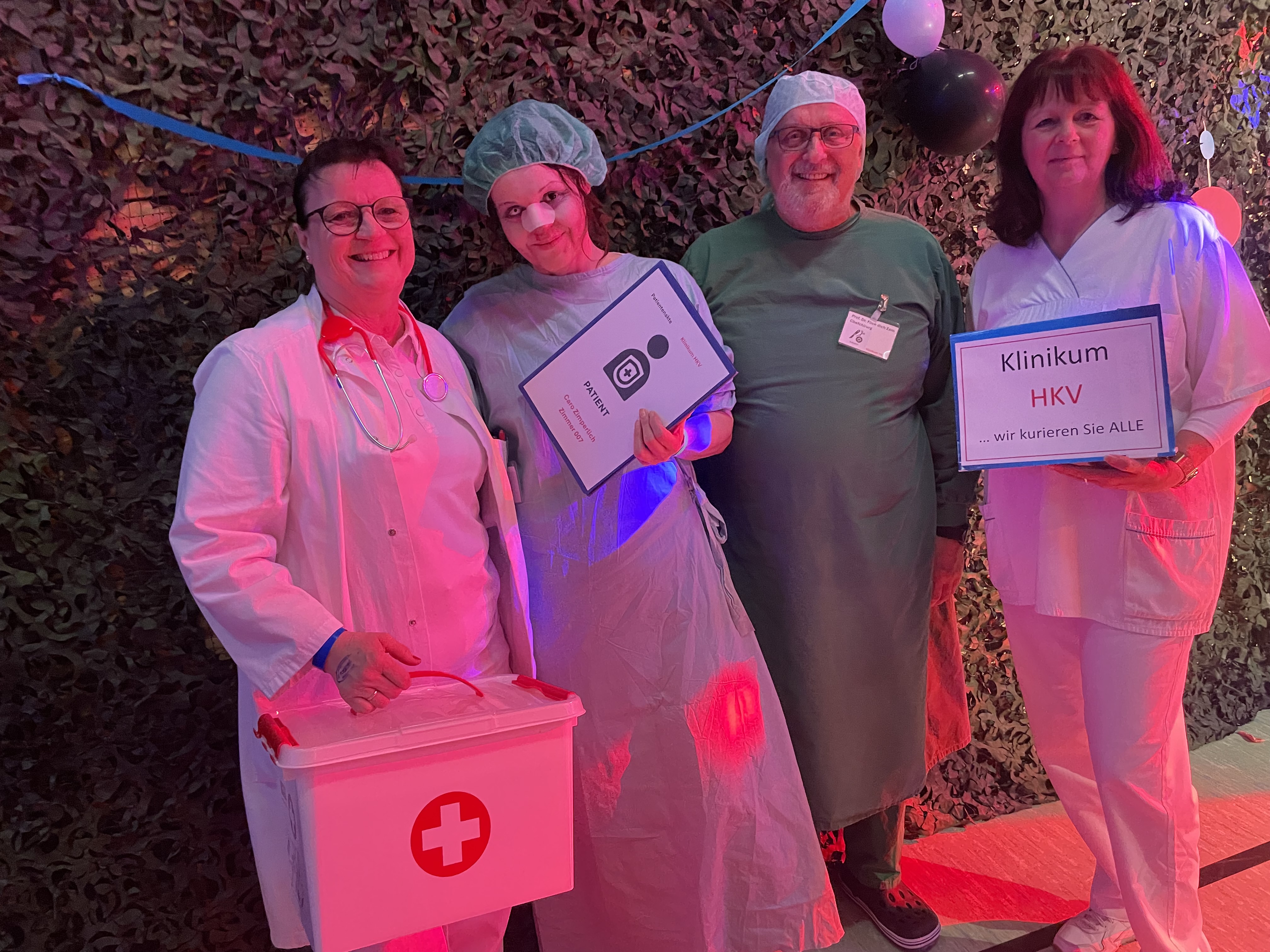 Beim diesjährigen Faschingsball der Blaskapelle und Feuerwehr war der HKV mit einer kleinen Delegation vertreten. Verkleidet präsentierte sich der HKV als Ärzte, Schwestern und Patientin des HKV-Klinikums und sorgte damit für schmunzelnde Blicke im bunten Karnevalsgetümmel.